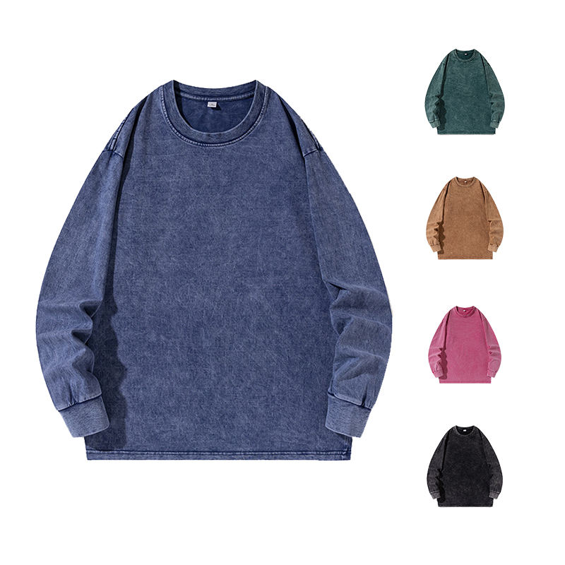 Camiseta Oversize Personalizada para Hombre, Estilo Hip Hop, de Algodón Grueso, con Lavado Ácido y Hombros Caídos, Manga Larga