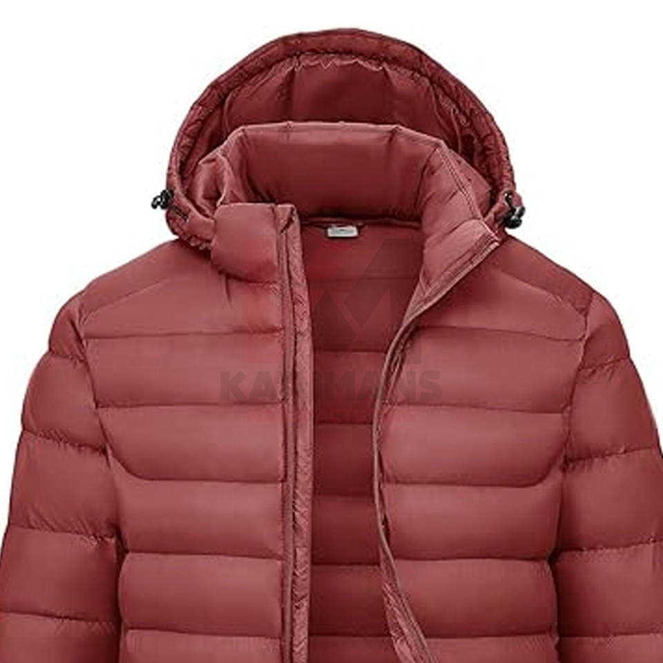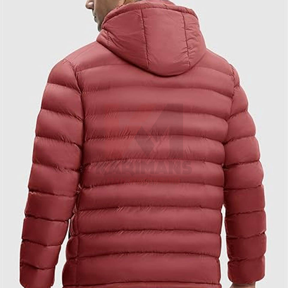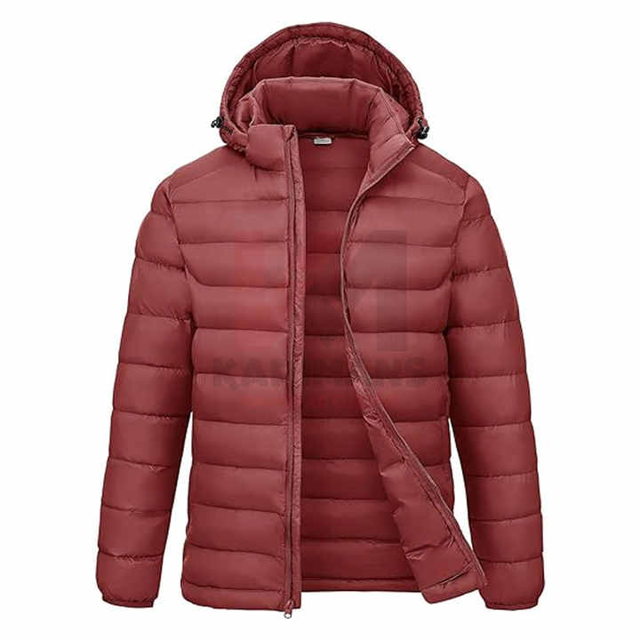 Chaqueta hinchada ligera empacable para hombre con capucha desmontable Abrigo de invierno aislado resistente al agua con puños elásticos