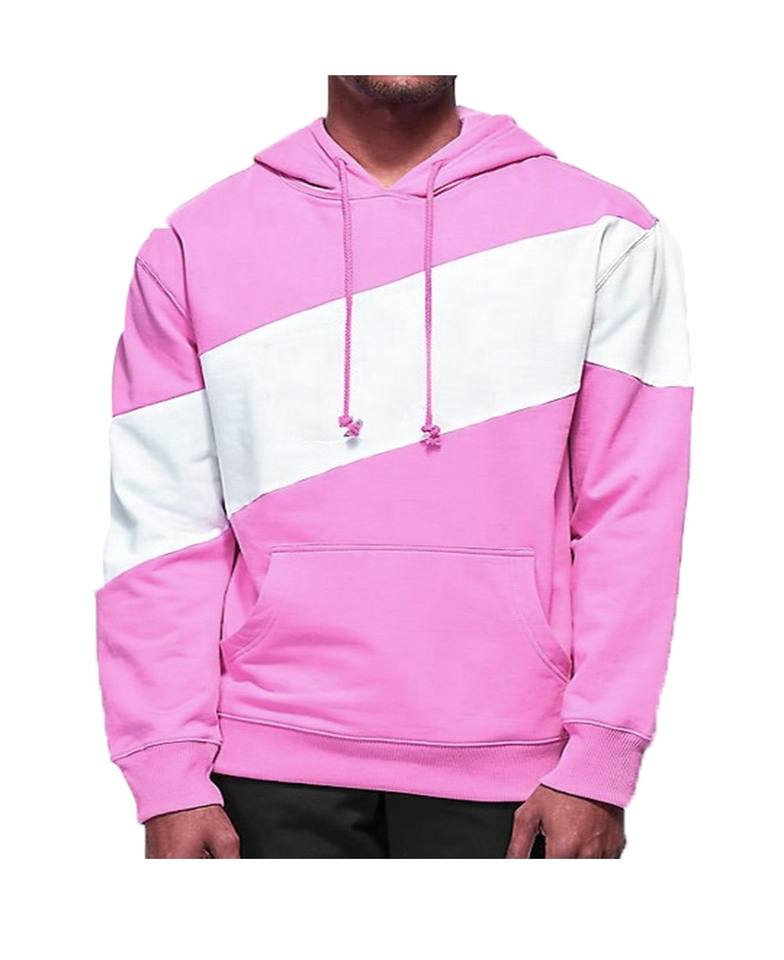 Sudadera con capucha de bloque de color rosa y blanco para hombre sudadera de lana con rayas diagonales OEM ODM al por mayor