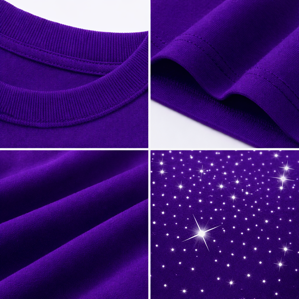 Camiseta Morada con Pedrería para Hombre, 100% Algodón, Estilo Casual Urbano, Oversize, Verano, Diseño Gráfico, Hip Hop