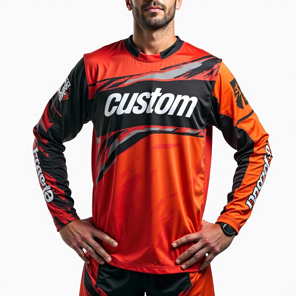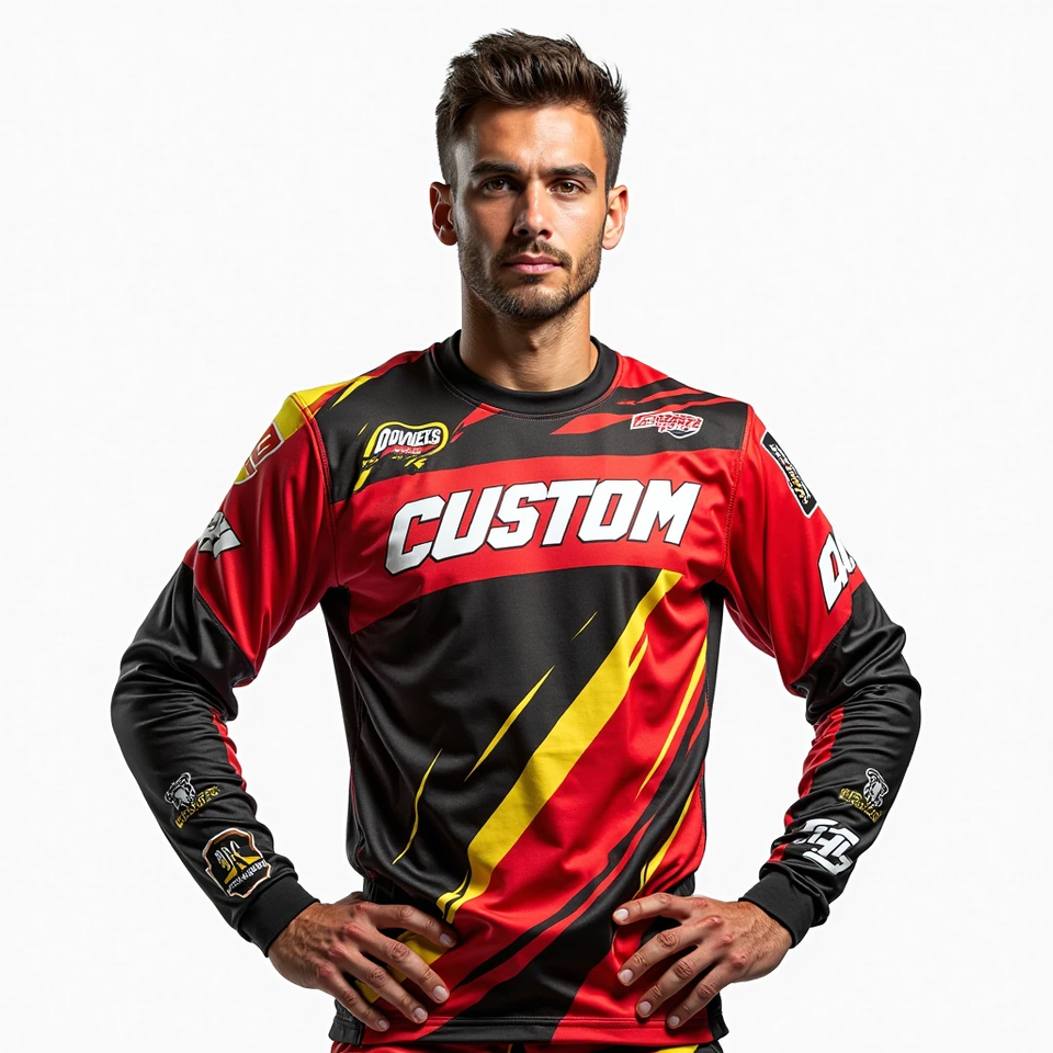 Camiseta de Carreras para Hombre, Motocross, Manga Larga, Ajuste Personalizado, Transpirable y Resistente al Viento, Diseño Sublimado para Carreras de MX y Dirt Track