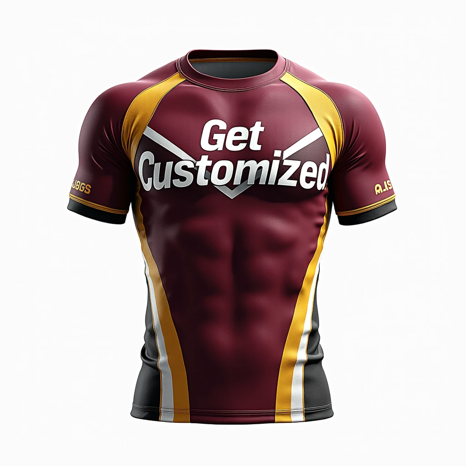 Camiseta Deportiva de Compresión de Manga Corta para Hombre, Color Granate con Estampado Gráfico Dorado, Personalizada, para Entrenamiento Atlético, Gimnasio, Rendimiento Deportivo