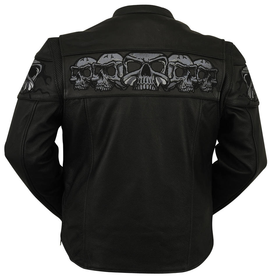 Chaqueta de Cuero Genuino con Bordado de Calavera Reflectante para Hombre, Ropa de Calle Personalizada para Motociclistas, Prenda Exterior con Cuello Alto, Invierno, Lona, Talla XS