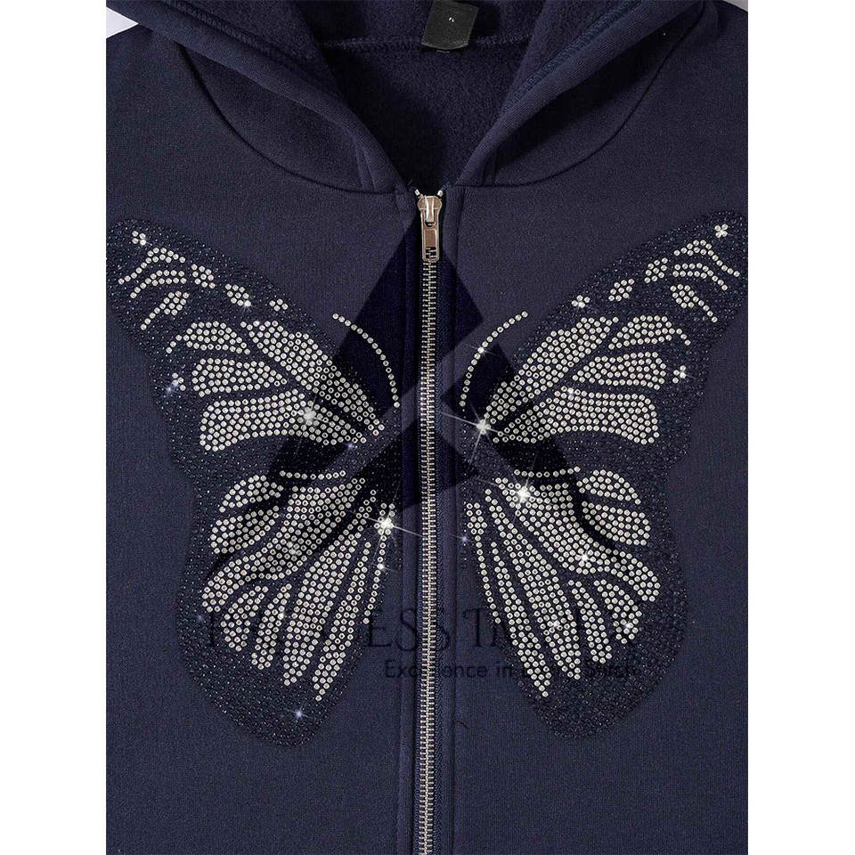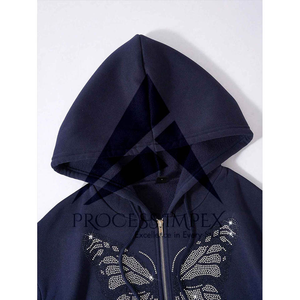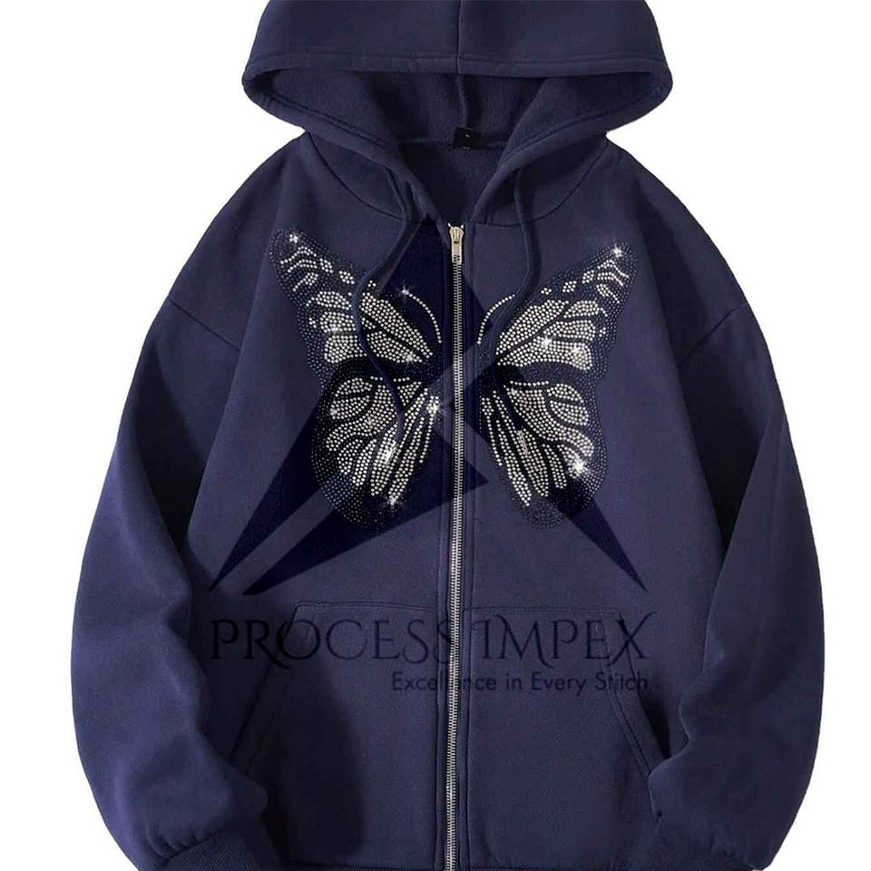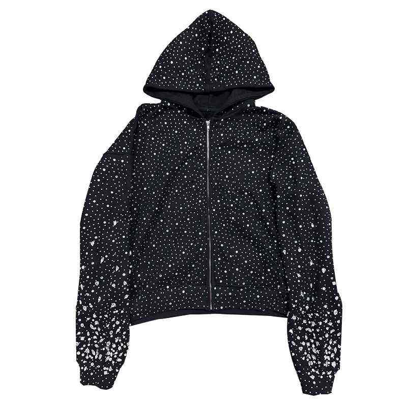 Sudadera con capucha de hombre con pedrería, cremallera completa, corte oversize, tallas grandes, tejido grueso, hombros caídos, estilo boxy, procesamiento premium Impex