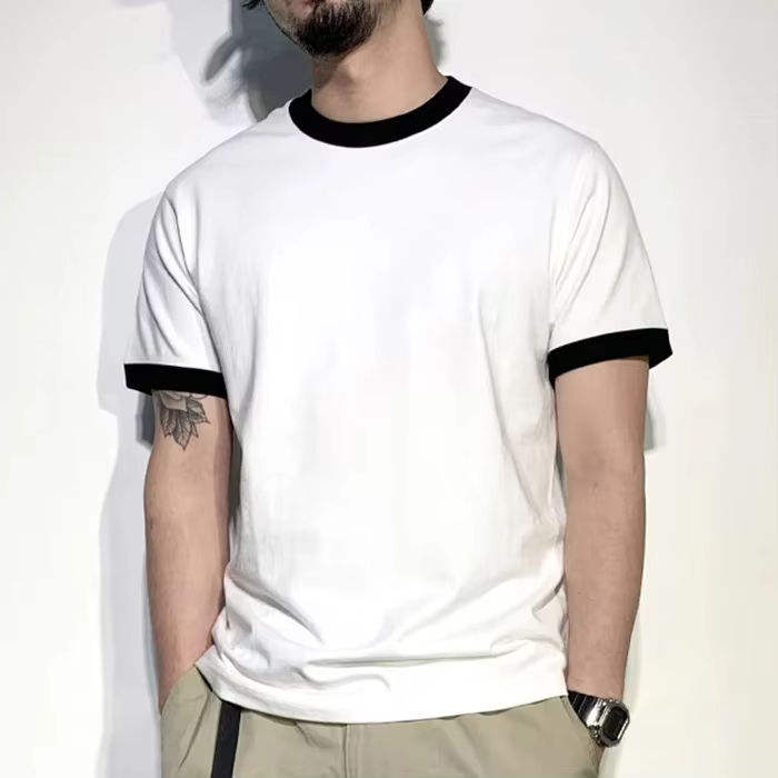 Camiseta Ringer para Hombre, Cuello Redondo con Ribetes en Contraste, Manga Corta, Mezcla de Algodón, Estilo Casual Retro, Variedad de Colores