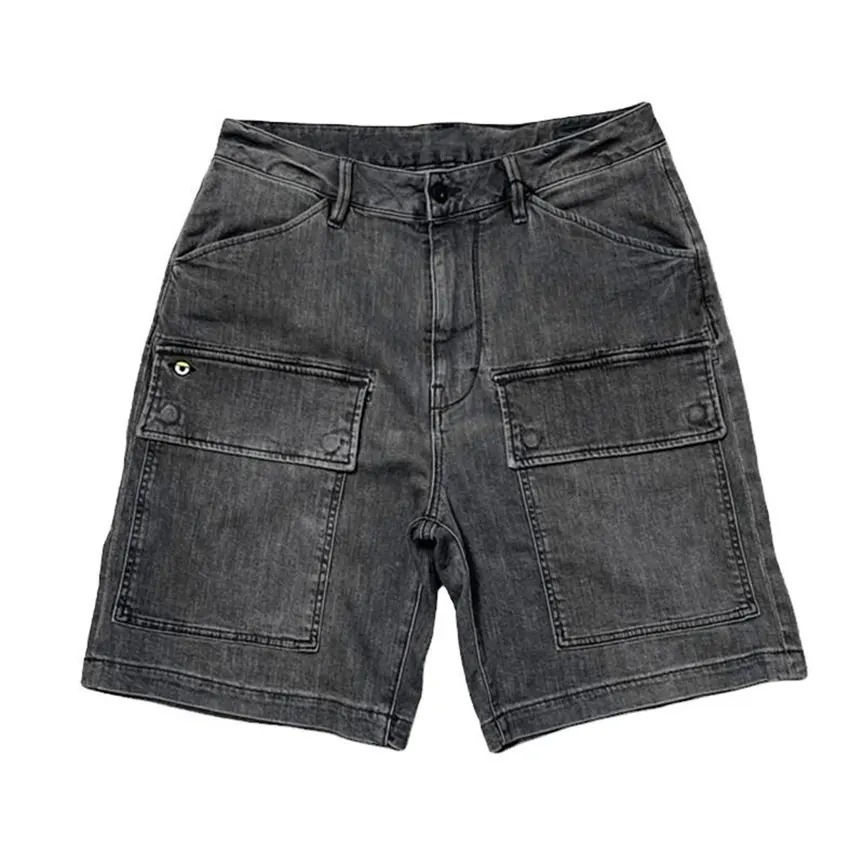 Shorts de mezclilla para hombre, rasgados, desgastados, con ribete sin rematar, de cintura alta y pierna recta, al por mayor