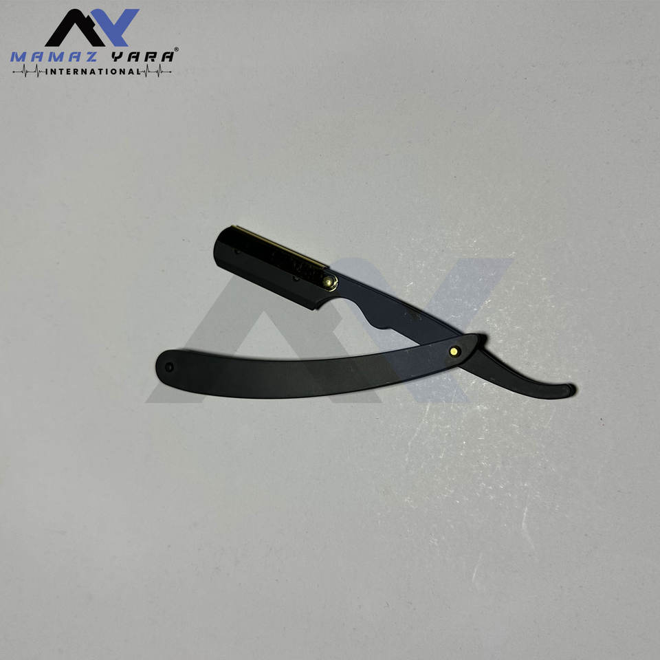 Navaja de Afeitar Plegable Negra Antigua para Hombre, Herramientas de Barbería, Navaja de Afeitar Recta de Acero Inoxidable con Soporte para el Cuidado Personal