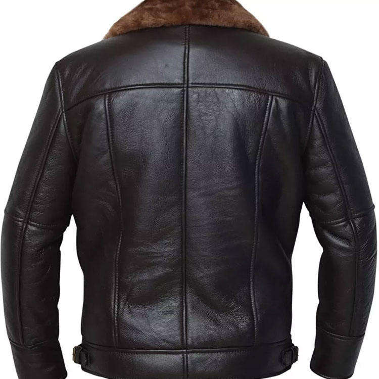 Chaqueta de bombardero de cuero genuino de piel de oveja para hombre, ropa de abrigo de invierno Vintage para hombre, chaqueta de bombardero con cuello de piel a la moda