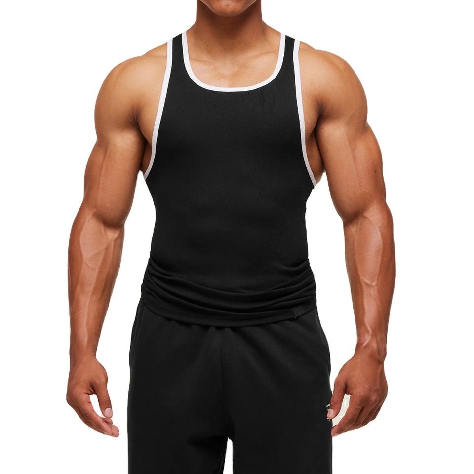 Camiseta sin mangas de algodón elástico con corte ajustado para hombre, chaleco deportivo para gimnasio, top de entrenamiento atlético para hombre.