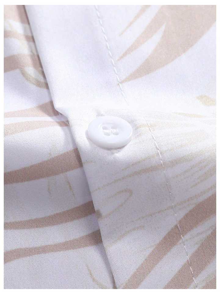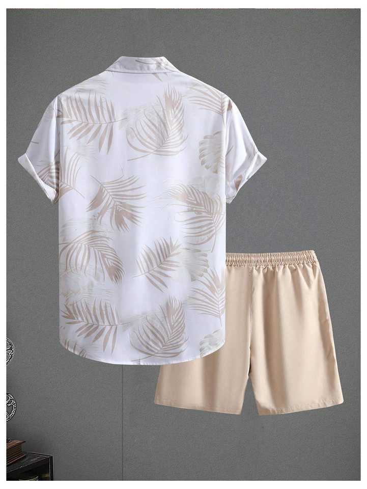 Conjunto de dos piezas de verano con estampado de hojas sutiles para hombre, camisa de manga corta con botones y pantalones cortos con cintura elástica, conjunto ligero para la playa
