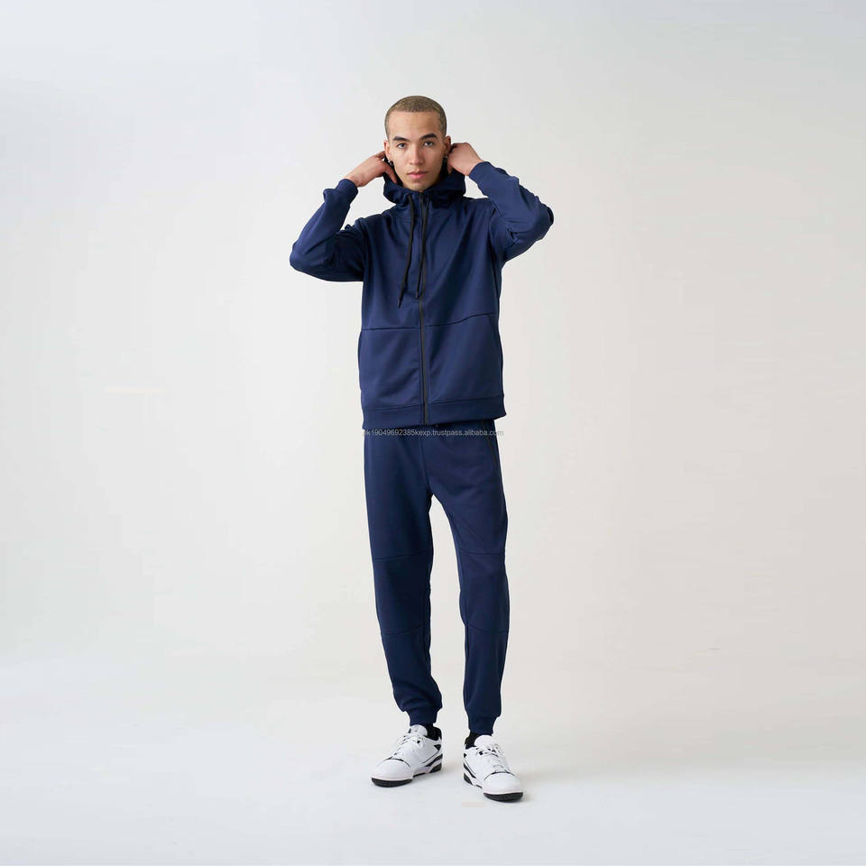 Conjunto Deportivo de Dos Piezas para Hombre, Fleece Técnico, Color Azul Marino, Ligero y Transpirable, para Correr, Entrenamientos en el Gimnasio y Uso Diario Informal
