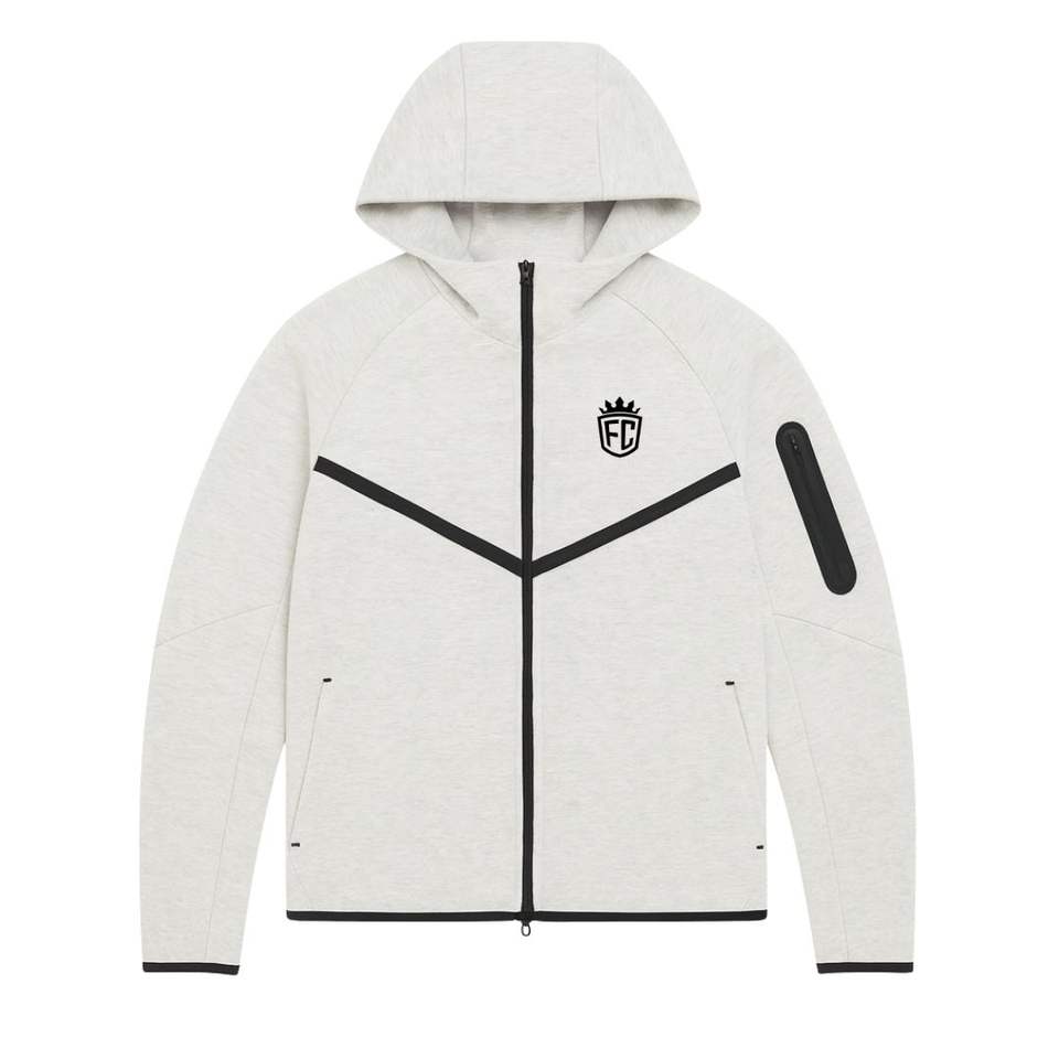 Conjunto Deportivo de Chaqueta con Capucha y Cremallera Completa y Pantalones Deportivos de Forro Polar Técnico para Hombre, Color Gris Nieve, para Entrenamiento Atlético