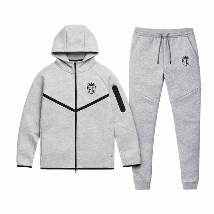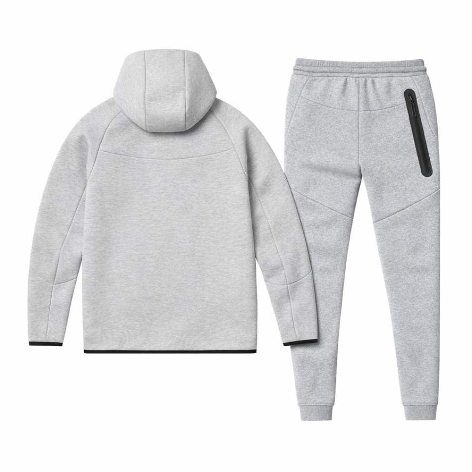 Conjunto Deportivo para Hombre, Chaqueta con Capucha y Cremallera Completa, Pantalones Deportivos, Estilo Windrunner, Felpa Técnica, Color Gris Jaspeado, para Entrenamiento Atlético