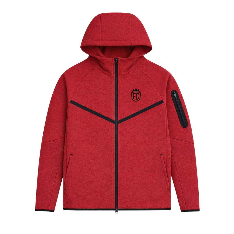 Conjunto Deportivo Unisex de Felpa Técnica con Estampado, Chaqueta con Capucha y Cremallera Completa, Pantalones Deportivos, Chándal, Color Granate, Ropa Deportiva para Entrenamiento