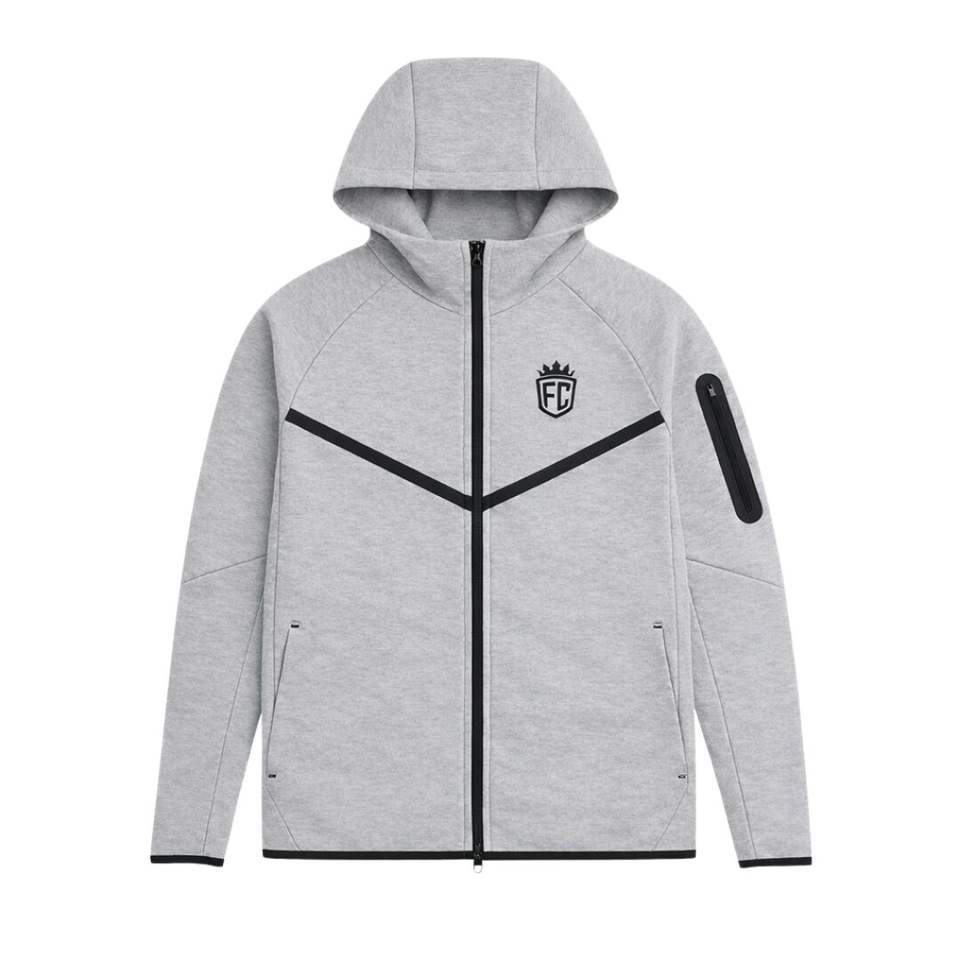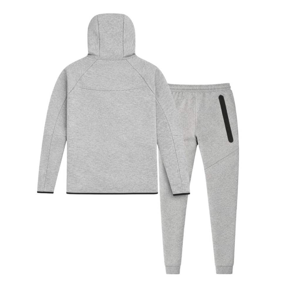Conjunto Deportivo de Chaqueta con Capucha y Cremallera Completa y Pantalones Deportivos de Felpa Técnica para Hombre, Color Gris Claro, para Entrenamiento Atlético