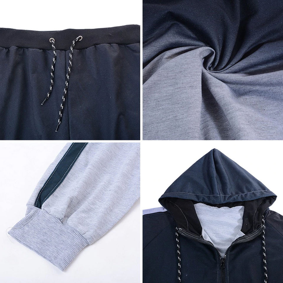 Chándal de invierno de dos piezas para Hombre | Jersey de cuello redondo de color sólido y Joggers | Ropa deportiva de doble capa
