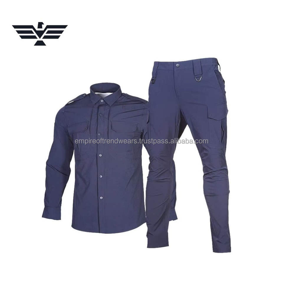 Conjunto de Uniforme Laboral para Hombre, Camisa de Trabajo y Pantalones Cargo de Poliéster/Algodón Resistentes (Colores Sólidos para Todas las Temporadas)