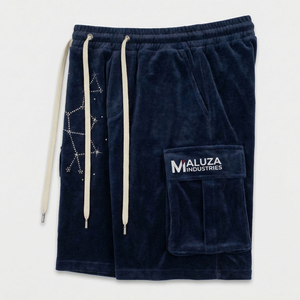 Shorts Cargo Unisex de Terciopelo con Estrella de Diamantes de Imitación, Ropa Urbana de Lujo, Moda de Verano, Secado Rápido, Ecológicos, Maluza Industries