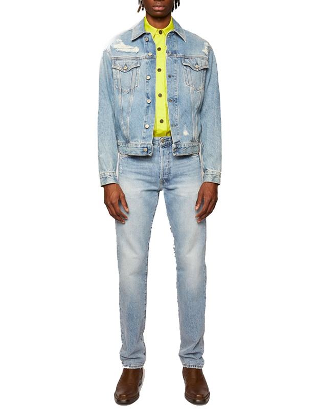 Chaqueta de mezclilla de Estilo Vintage para hombre con cierre de botón de ajuste regular y piel en el interior