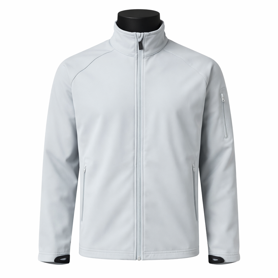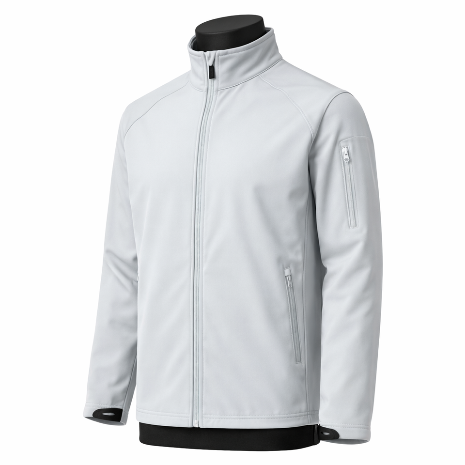 Chaqueta Softshell Blanca para Hombre, con Cierre Completo, Resistente al Viento y al Agua, para Trabajo al Aire Libre, con Bolsillo con Cremallera en la Manga