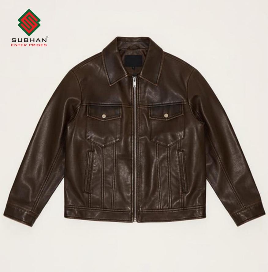 Chaqueta Bomber Extra Grande para Hombre, Color Marrón, Abrigo de Cuero Informal y Acogedor, Ropa de Calle Vintage, Servicio OEM, Cierre de Cremallera, Diseño Sólido