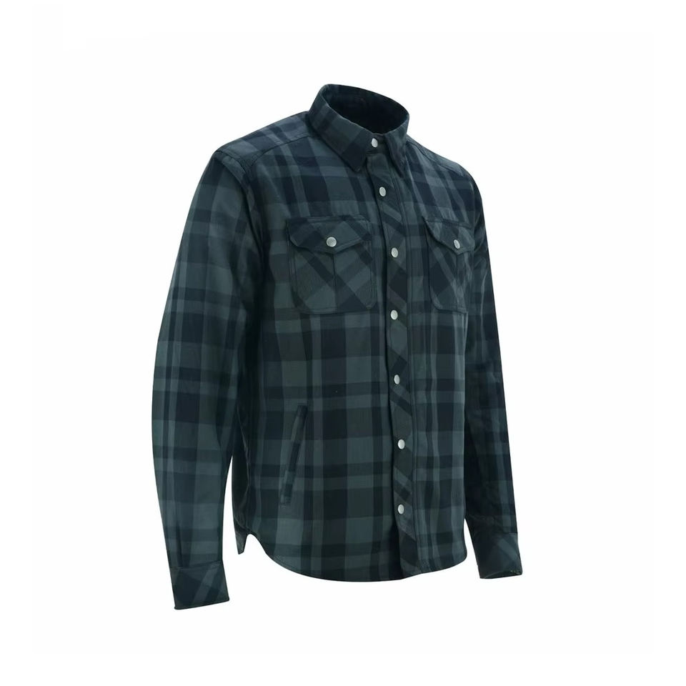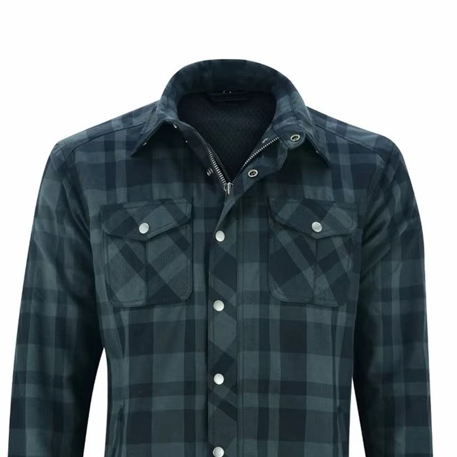 Ropa de Motociclista Ignífuga con Armadura Oculta para Hombre y Mujer, Talla Grande, Franela Gris Oscuro/Negro, DuPont, Costura de Seguridad EN