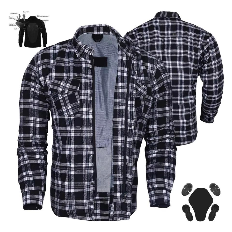 Camisa de Motociclismo Blindada de Nivel 2 para Hombre y Mujer, Personalizada, Negra, Blanca, a Cuadros, Ignífuga, Resistente a la Abrasión, de Franela, Protectora