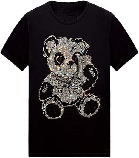 Camiseta Brillante con Pedrería para Hombre y Mujer, Manga Corta, Estilo Rock, Festival, con Gemas, Camiseta Gráfica de Algodón