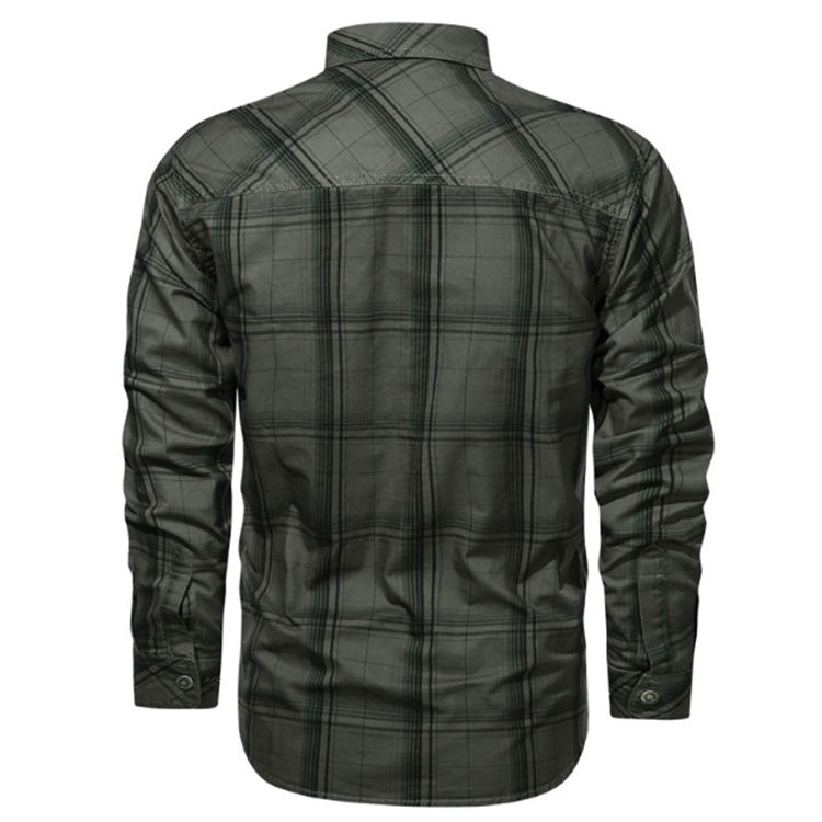 Camisa de franela a cuadros para hombre en tonos caqui y marrones con bolsillos de botón en el pecho y manga larga