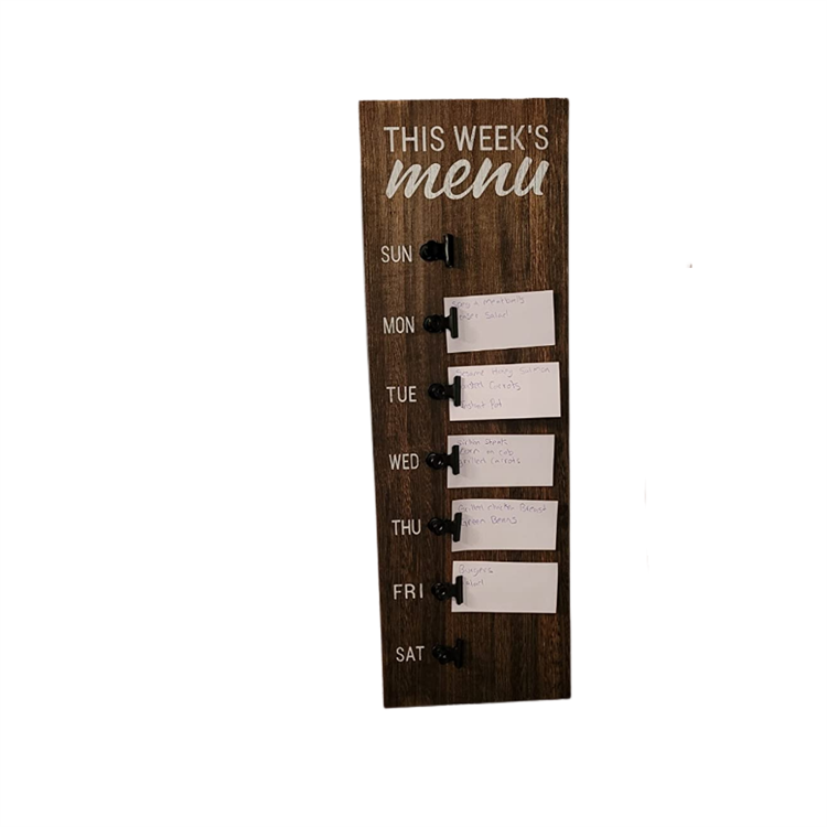 Tabla de menú de cocina, planificador de comida semanal magnético rústico con Clips, letreros de granja, nevera, carpeta de menú de pared de madera