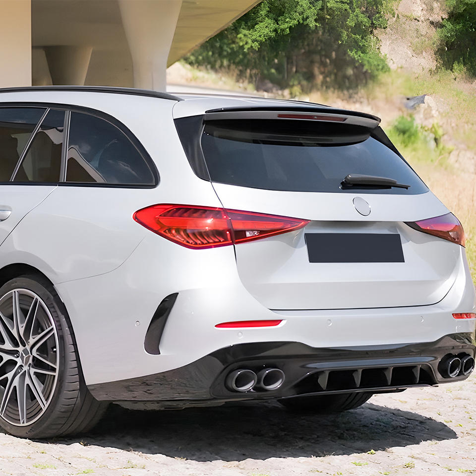 Mercedes-Benz C-Class Estate Rear Spoiler Piano Black Carbon Fiber Texture Ducktail Trunk Lip 2022+