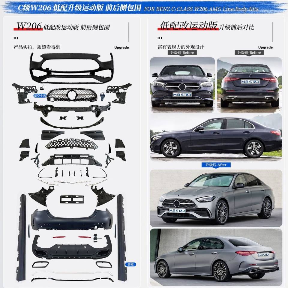 Mercedes-Benz C-Class W206 Rear Bumper Honeycomb Trim L2548858102 R2548858202 Clip-On Retrofit Upgrade Part