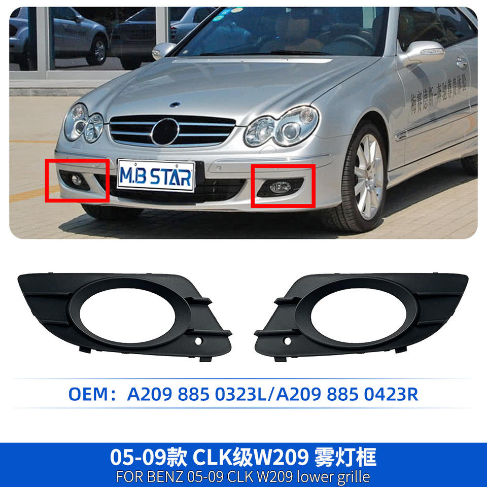 Rejilla de malla para faro antiniebla delantero Mercedes-Benz CLK-Class W209 A2098850323 A2098850423 Material ABS