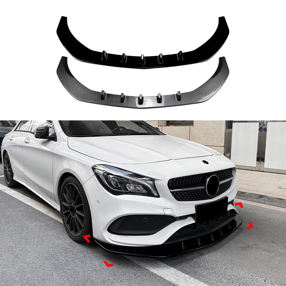 Mercedes-Benz ClA-Class C117 Front Bumper Lip Splitter Piano Black Carbon Fiber Texture Tuning Style 2016-2019 AMG