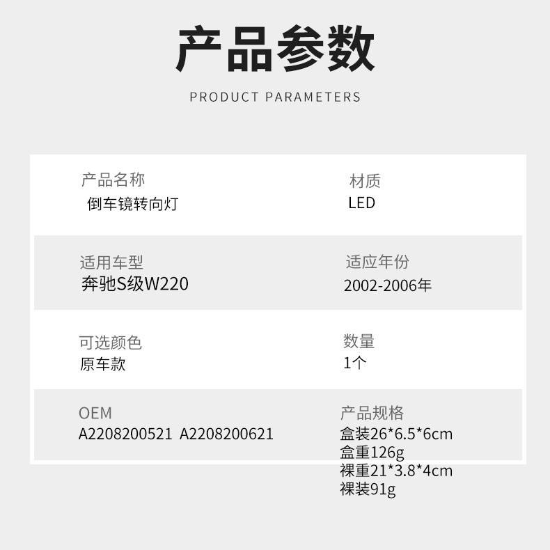 Conjunto de Luz Intermitente para Espejo Retrovisor de Mercedes-Benz Clase S W220, Izquierdo A2208200521, Derecho A2208200621, Repuesto para 2002-2006