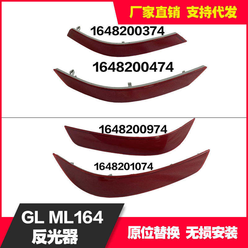 Reflector LED para Mercedes-Benz W164 Clase ML, 1648200974L/1074R 1648200374L/0474R, Rectangular, de PC, Instalación con Clic, Forma Plana