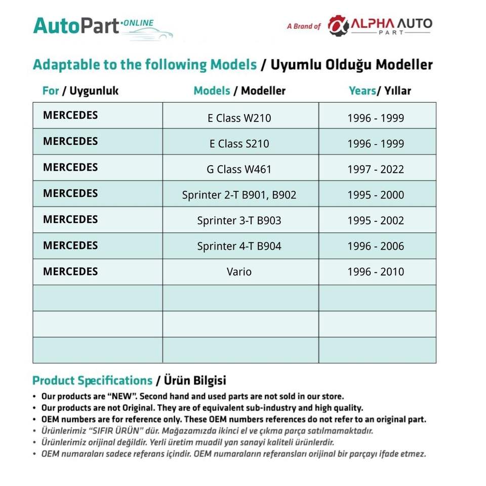Marca:Mercedes Compatible Spare Parts
