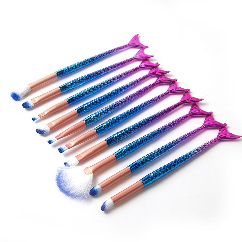 Juego de brochas de maquillaje de ojos promocionales profesionales de sirena, 10 Uds., brochas de maquillaje de sombra de ojos para maquillaje de niñas