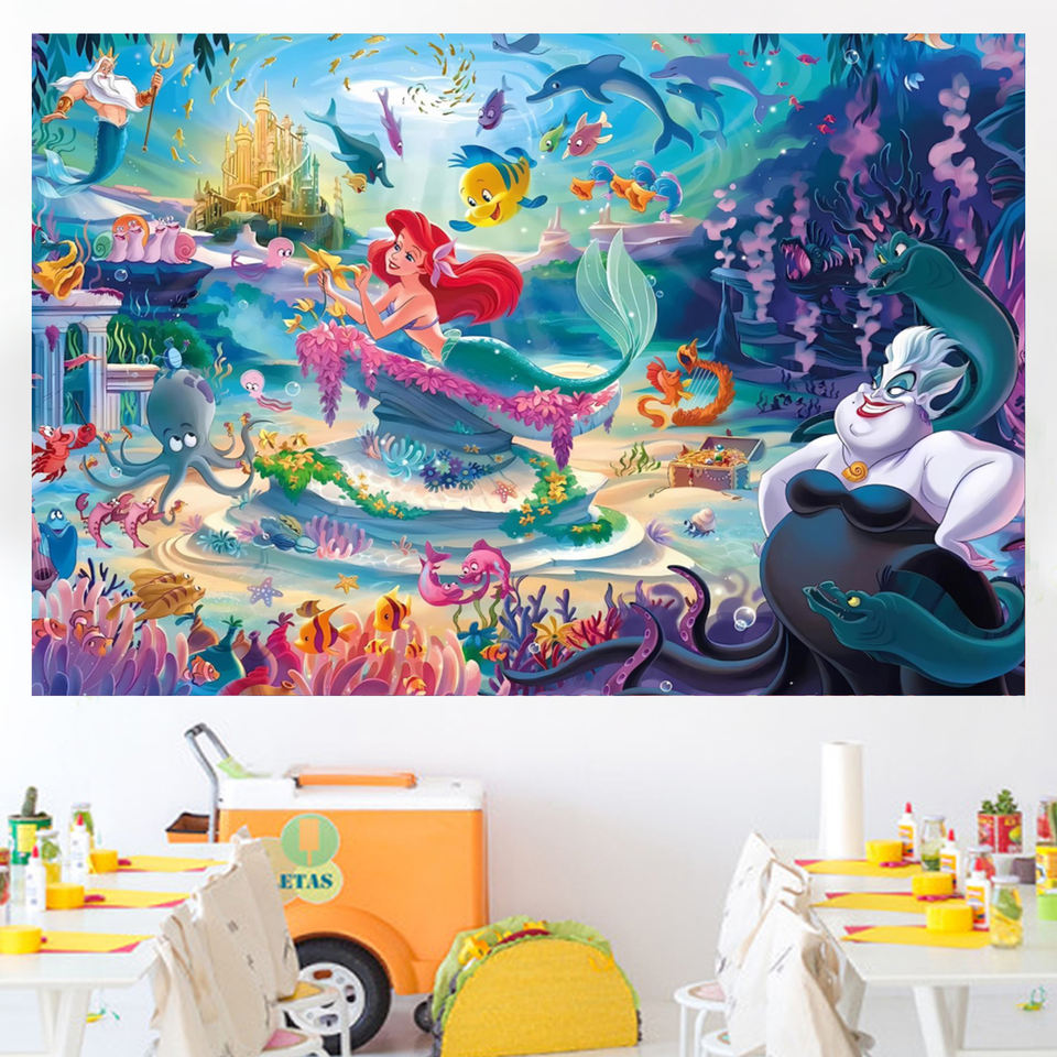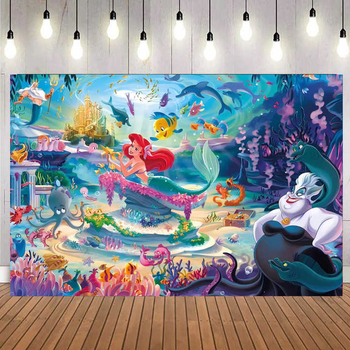 Fondo Fotográfico con Temática de Sirena, Pancarta de Fondo de Princesa Ariel para Decoración de Fiestas de Cumpleaños Infantiles