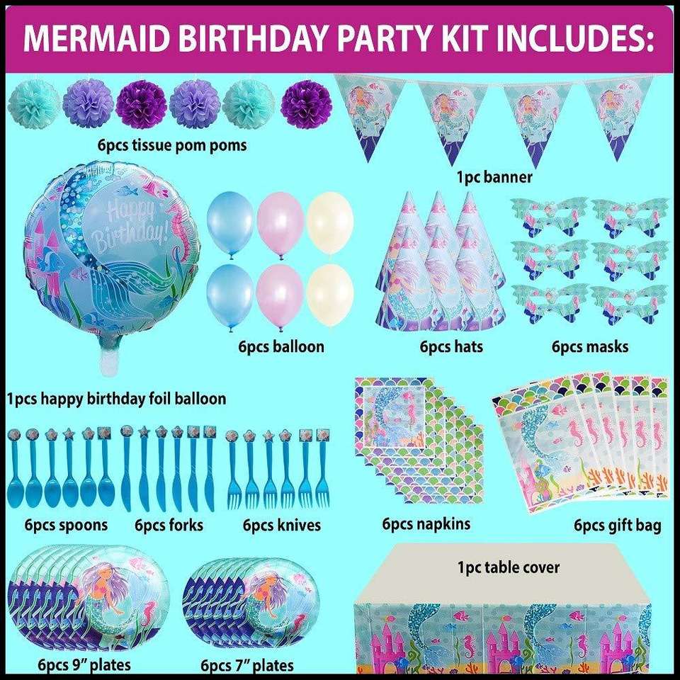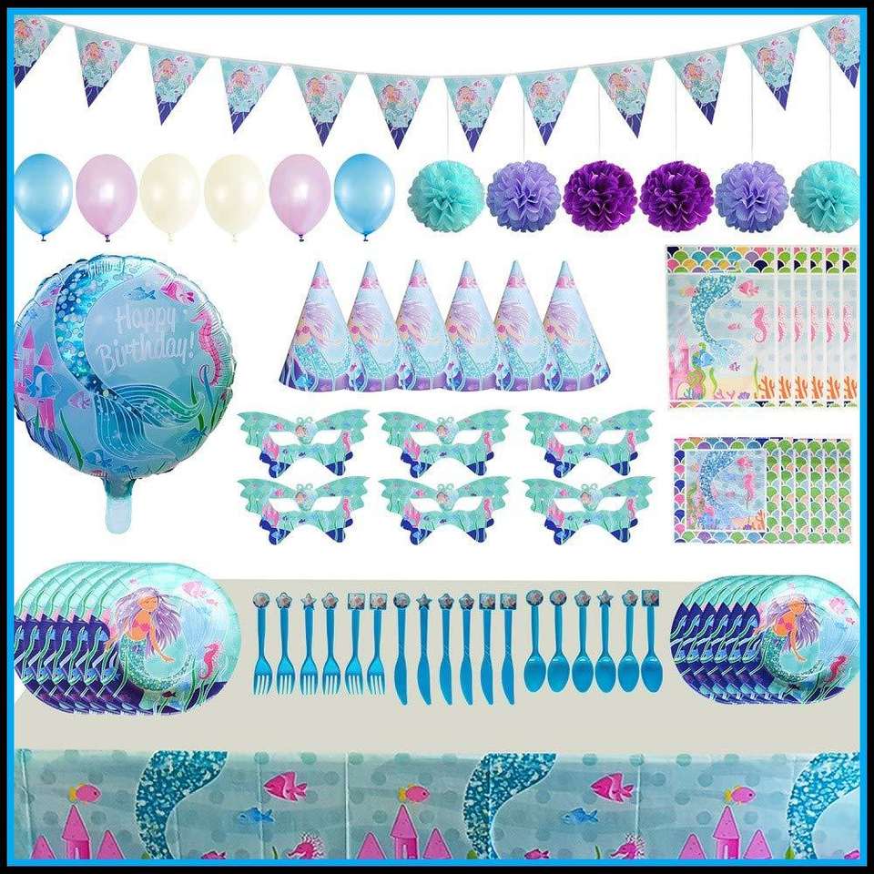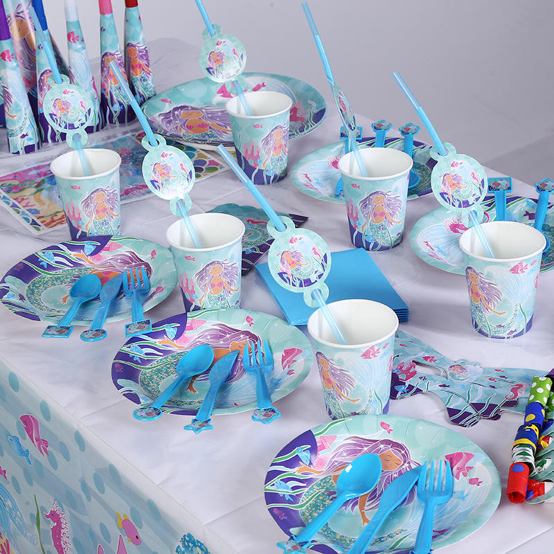 Juego de Decoraciones para Fiesta Temática de Sirenas, Platos de Papel, Vasos de Papel, Soporte para Pasteles, Vajilla para Fiesta Infantil