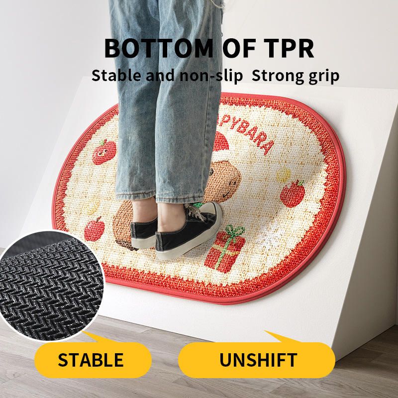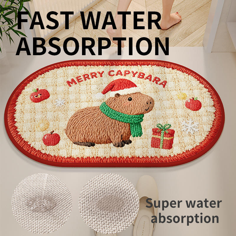 Alfombra de baño ovalada Merry Capybara, fibra de poliéster, antideslizante, absorbente, para uso doméstico en el baño
