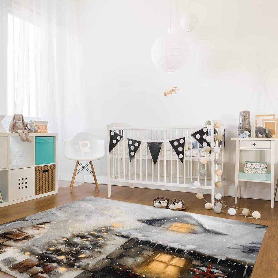 Feliz Navidad rústico Santa árboles alfombra absorbente antideslizante tejido de gran tamaño para dormitorio y sala de estar decoración del hogar en Stock
