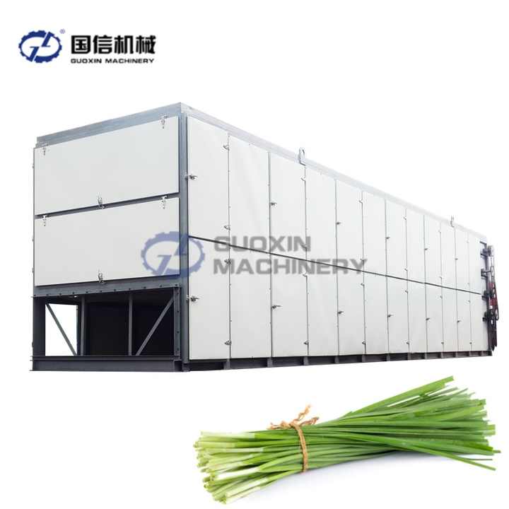 La línea de producción de secado de correa de malla maneja cebollino fresco y eneldo con velocidad rápida para el procesamiento diario