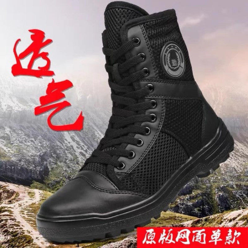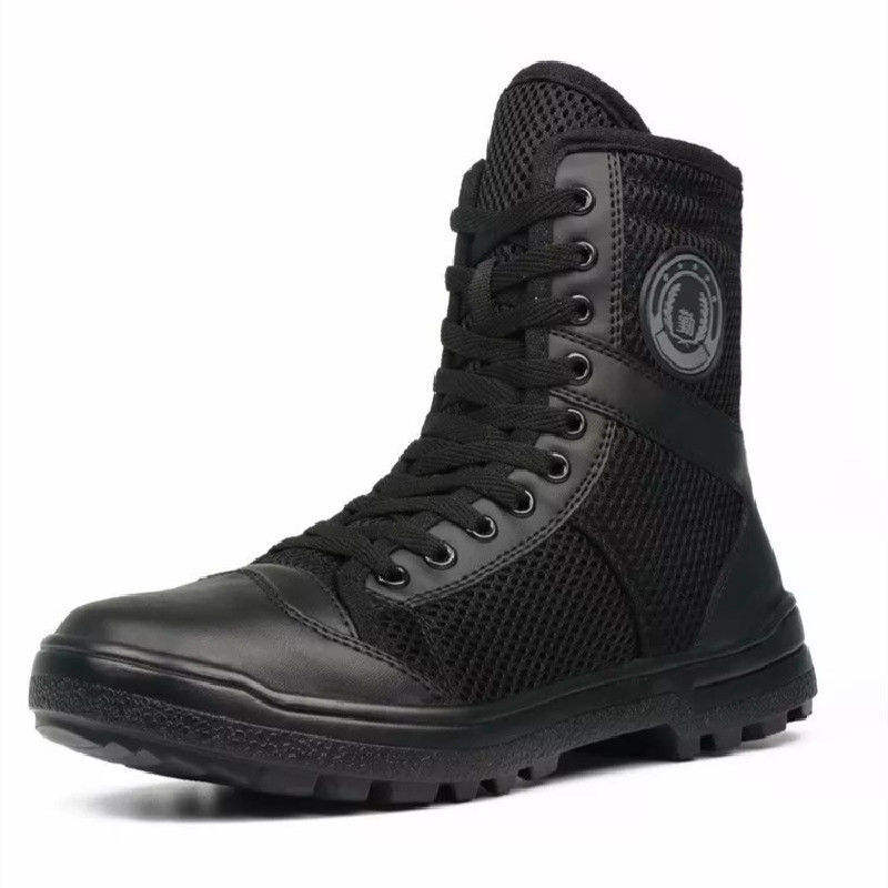 Botas de trabajo de malla con caña alta para hombre, negras, con cordones, transpirables, antideslizantes, para inspección de seguridad, de tacón bajo, para exteriores, tácticas.