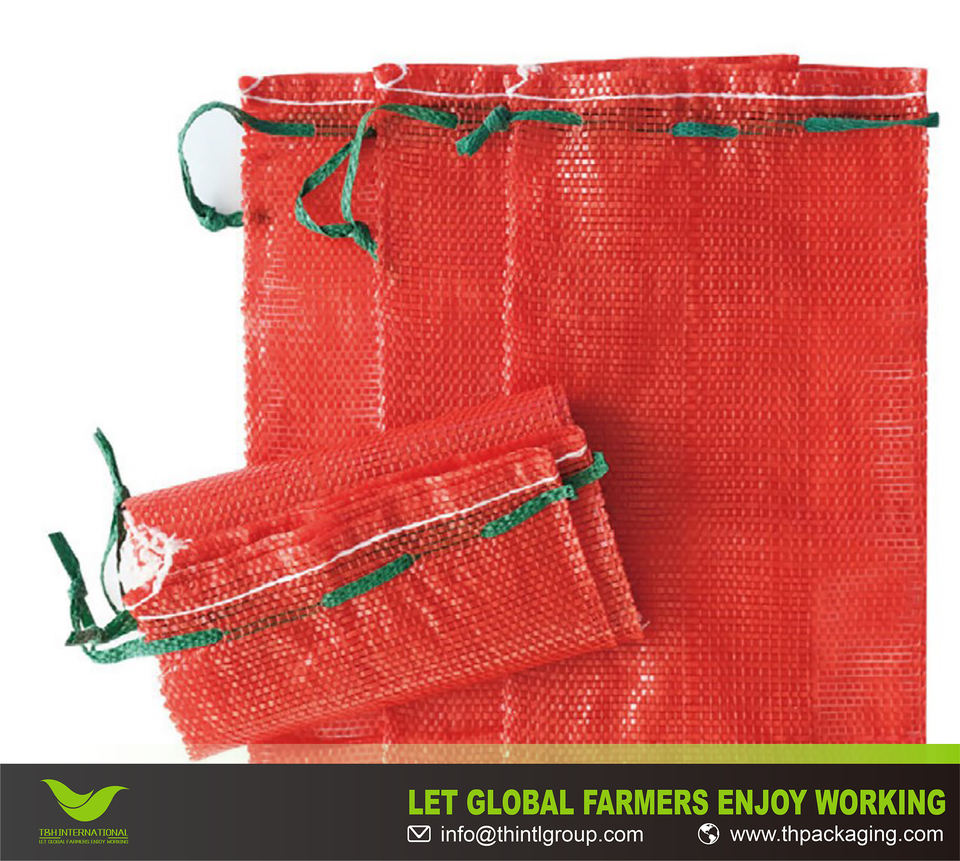 Bolsa de malla para cebollas – Bolsas de plástico transpirables para cebollas, patatas y ajo – Sacos de embalaje de 25 kg / 50 kg con cordón ajustable