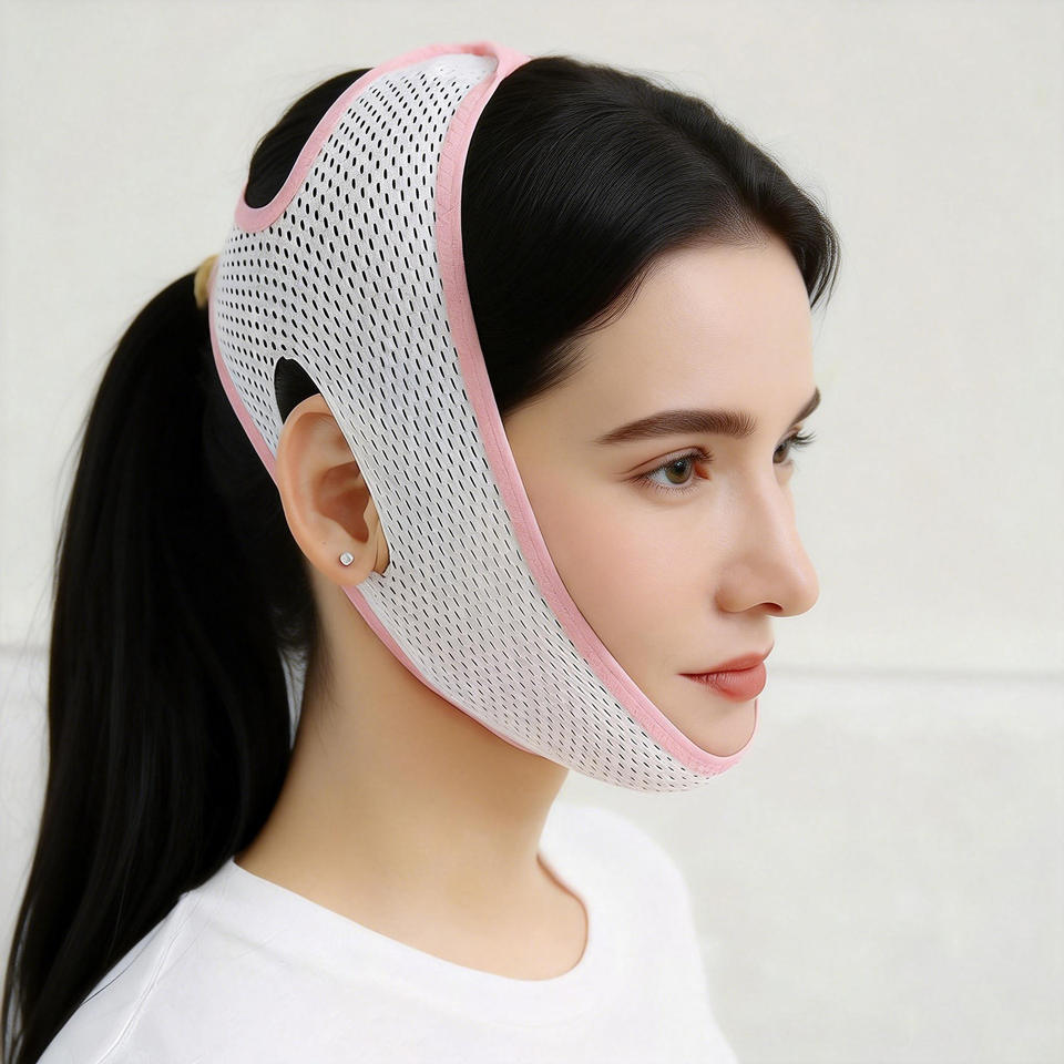 Cinturón moldeador facial transpirable de malla en V, dispositivo antirronquidos de poliéster blanco para contorno facial