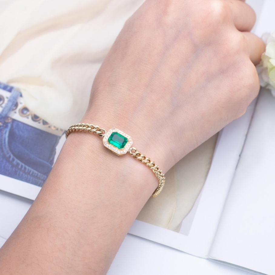 Joyería Personalizada de Messi, Brazalete de Esmeralda Creada en Laboratorio de 18K y 1.54CT, Joyería de Diamantes de Laboratorio