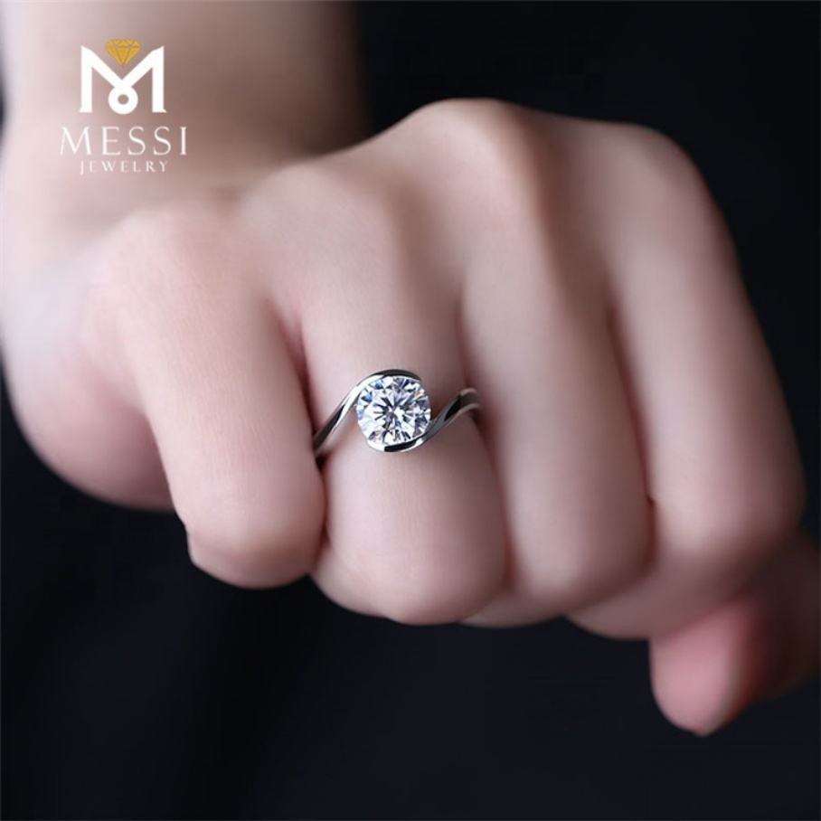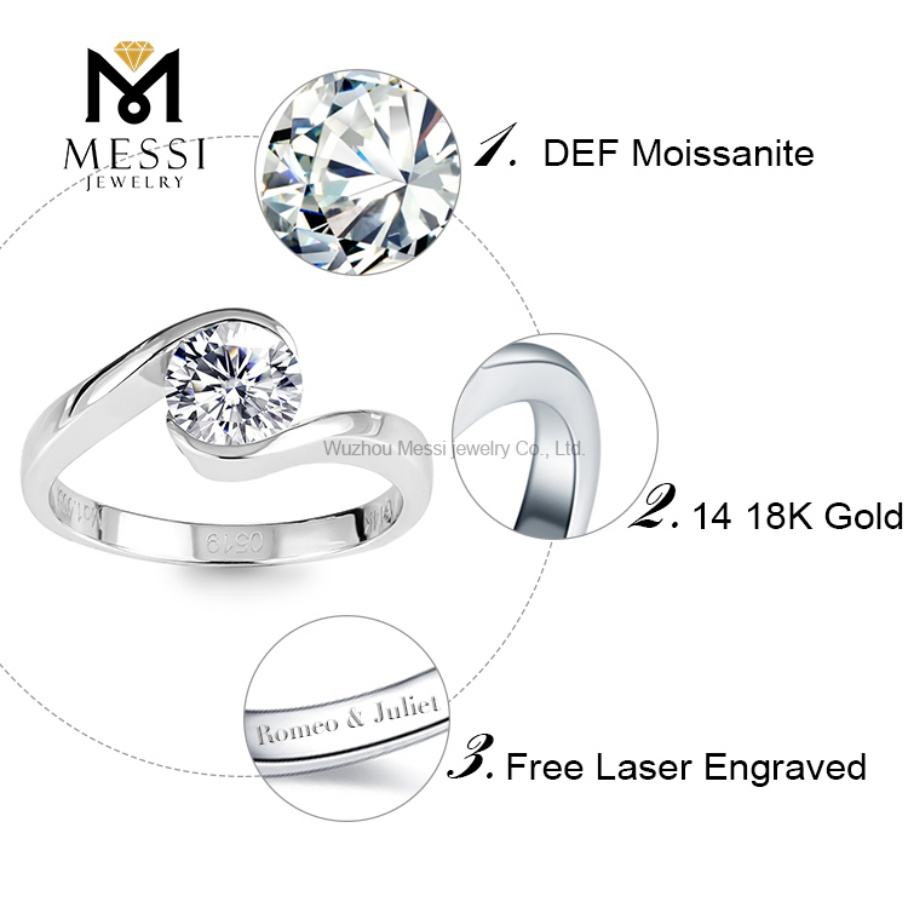Anillo de Compromiso de Diamante Moissanite de 2 Quilates de Alta Calidad Personalizado con Engaste de Bisel de Oro de 14k de Messi Jewelry