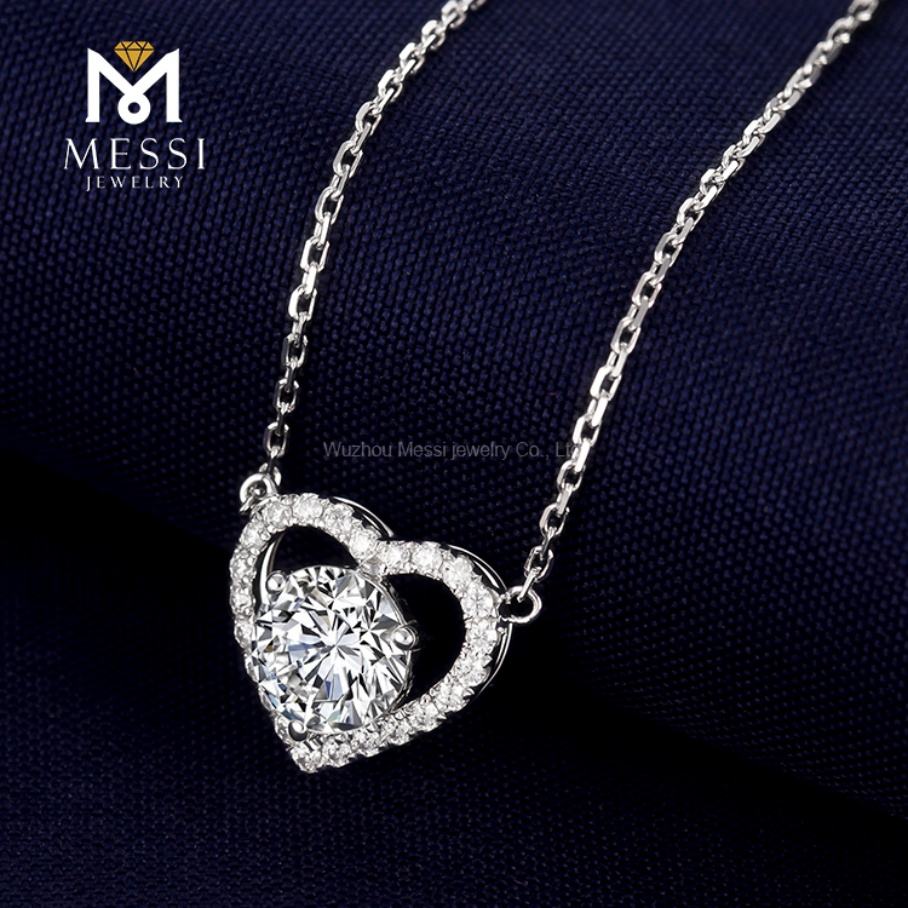 Collar de Moissanita con Forma de Corazón en Oro Blanco de 18k Personalizado MS-210 de Messi Jewelry