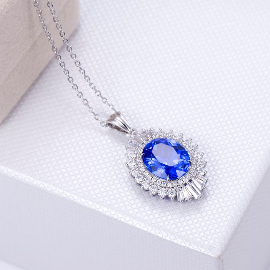 Collar con Colgante de Espinela Azul Océano Ovalada de 5.97 Quilates, Calidad AAA, Modelo MSN-655 de Messi Jewelry, para Mujer, Compromiso o Cena
